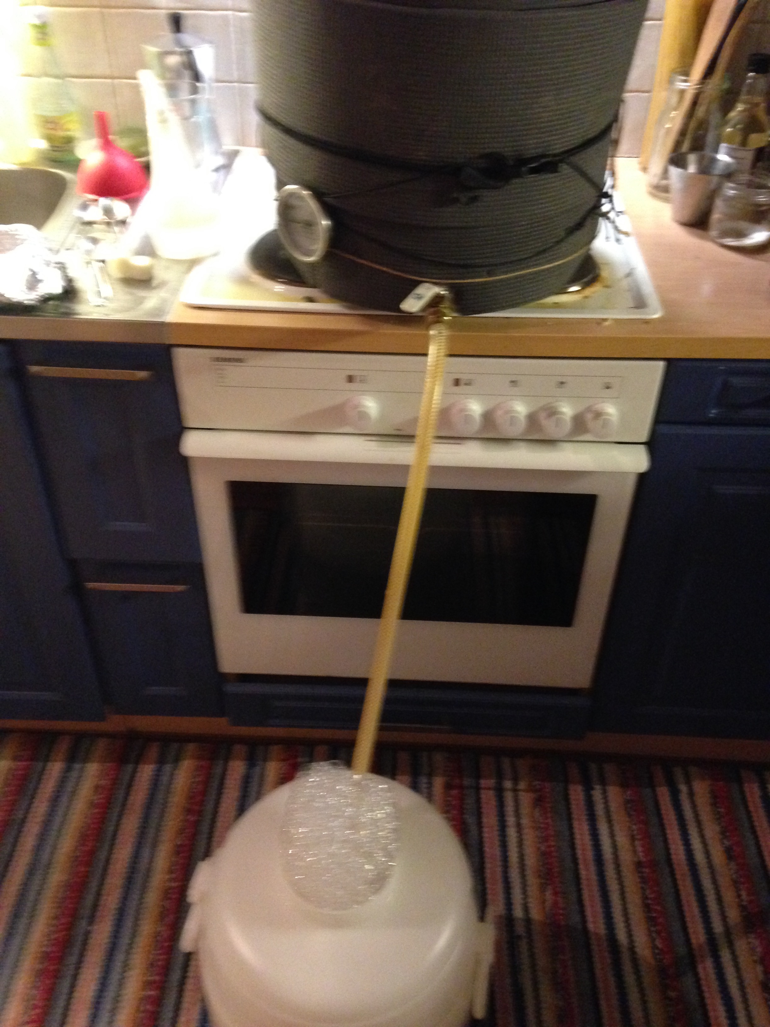 I missed the gravity on this one, the boil-off was not as expected so I got 1.072. BUT I got 25L instead of 22L, so it’s a nice trade-off. Assuming the beer ferments well it should still manage to reach a the same FG and around 7.x% ABV.